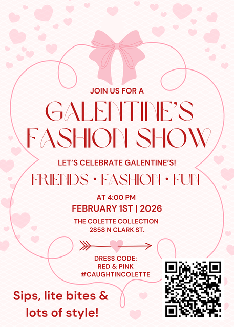 Join us for The Colette Collection Galentine’s Fashion Show, a casual, fun-filled celebration of friendship, fashion, and our amazing Colette community. We’ll be featuring so many heart sweaters you’ll fall in love with, along with date night looks and girls’ night out–inspired outfits styled straight from The Colette Collection.