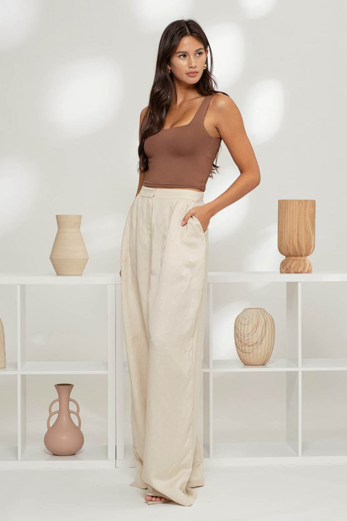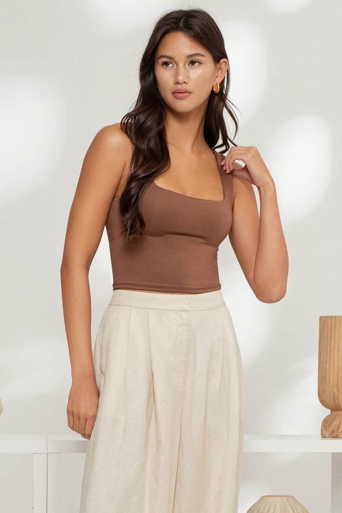 Flip it and reverse it! This sleek cropped tank features a chic square neckline and works double duty as a reversible style—wear it two ways, twice the outfit options. Crafted from a stretchy poly-spandex blend, it hugs your curves in all the right places while keeping you comfortable. Sleeveless and unlined for that breezy, effortless vibe. Perfect for layering or going solo, this versatile piece is ready for whatever your day throws at you.