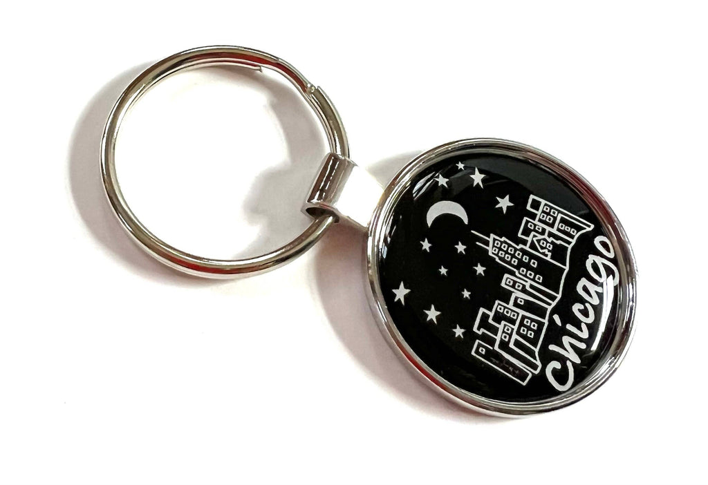 Mary Ellis - Chicago Keychain Night Skyline | Chicago Key Ring Gift