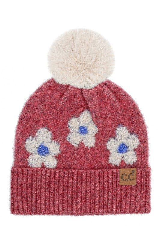 Stay cozy and cute with our C.C Daisy Pattern Beanie—a winter essential that brings cheerful style to chilly days. Crafted from 97% recycled polyester and 3% spandex, this beanie offers a comfortable, stretchy fit that moves with you. The fluffy faux fur pom adds a playful touch and extra warmth. Perfect for keeping your head toasty while making a sustainable fashion choice that feels as good as it looks.