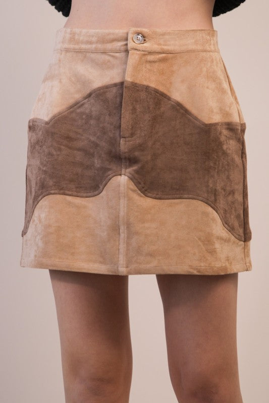 Color Block Vegan Suede Mini Skirt - Multiple Colors