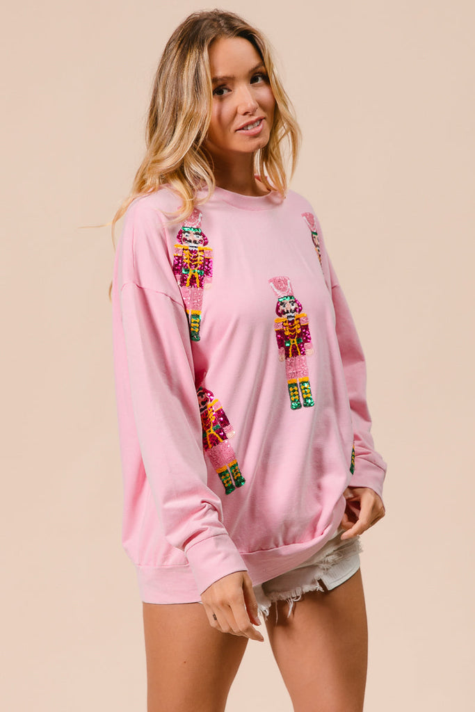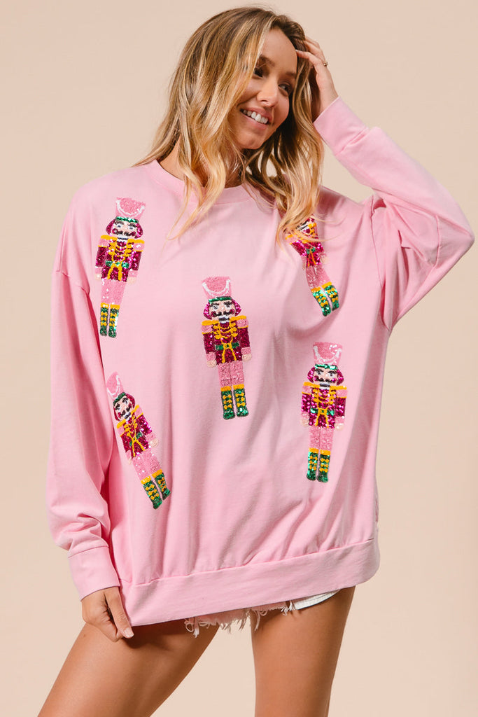 Pink Sequin Nutcracker Holiday Sweatshirt