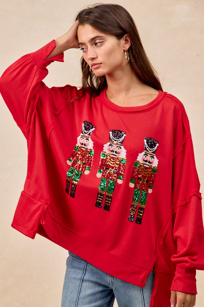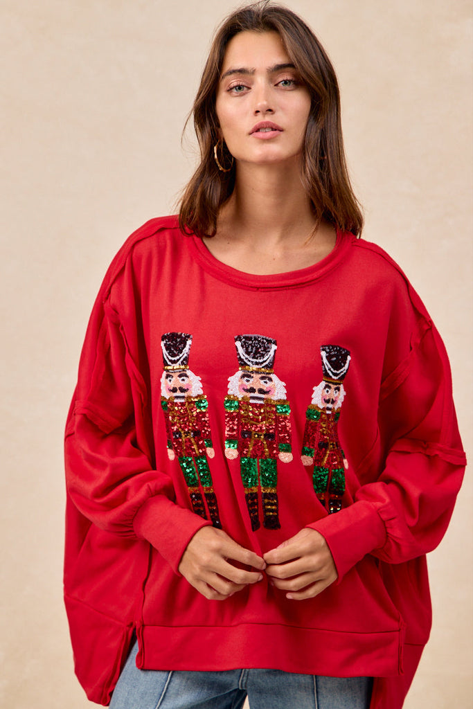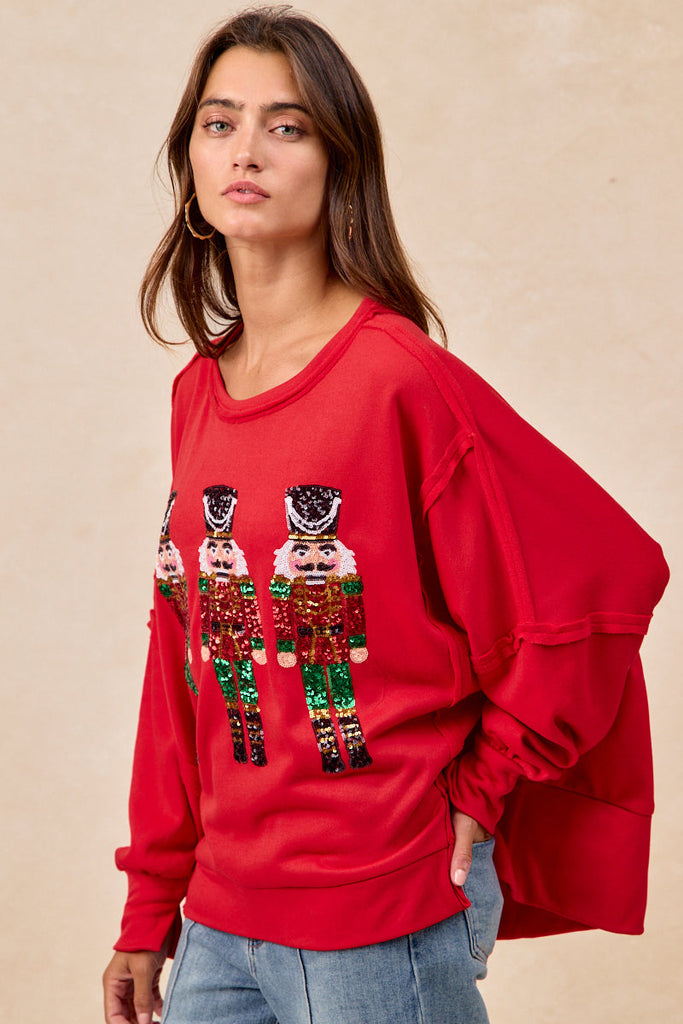 Red Sequin Nutcracker Holiday Sweatshirt