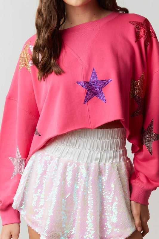 Starry Rhinestone Cropped Sweatshirt - Multiple Colors