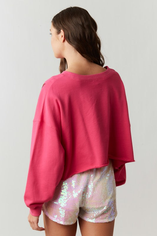 Shine bright like a diamond in this Starry Rhinestone Cropped Sweatshirt! Sparkling rhinestone patches create a celestial vibe that's totally enchanting, while the classic round neckline and long sleeves keep things comfy and wearable. The cropped silhouette pairs perfectly with high-waisted bottoms, and the raw hem adds an effortlessly cool edge. Made from 100% soft cotton, this sweatshirt feels as good as it looks. Available in multiple colors to match your mood—whether you're channeling cosmic energy or just want to add some sparkle to your everyday style. A playful piece that's sure to turn heads!