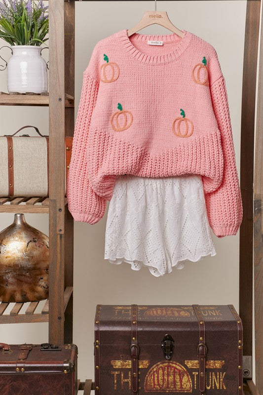 Cozy up in fall’s sweetest sensation—our Oversized Pink & Pumpkins Sweater! Made from super soft chenille, it wraps you in plush comfort while playful 3D pumpkin appliques add a festive touch. Perfectly oversized for relaxed layering, it’s your go-to for Friendsgiving fun or Thanksgiving cheer. Embrace the season in style and softness!