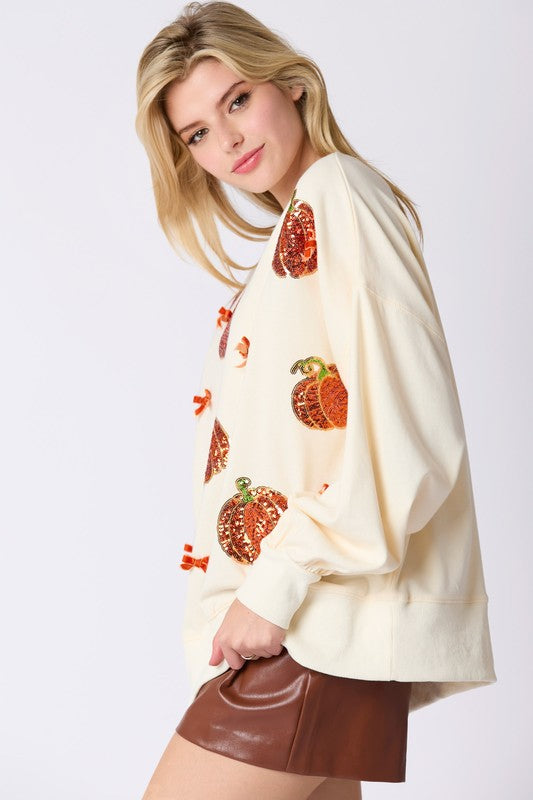 Sequin Pumpkins & Bows Oversized Sweatshirt